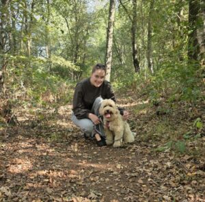 Na een tijdje op mezelf wonen merkte ik dat ik de viervoeters om me heen miste. Dus heb ik in de winter van 2024 een nieuwe huisgenoot genomen: Yuna de Labradoodle. Nu trainen we samen bij de Kyon, zowel Gedrag & Gehoorzaamheid als sinds 2026 ook behendigheid. En help ik de trainers bij het lesgeven.